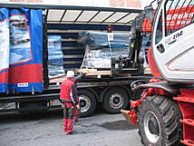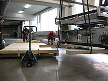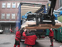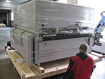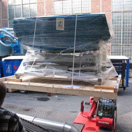 Export logistics, dismantling including laserhead removal, transport locking, inhouse transportation, export packaging, loading on custom-made transport floors, loading on truck